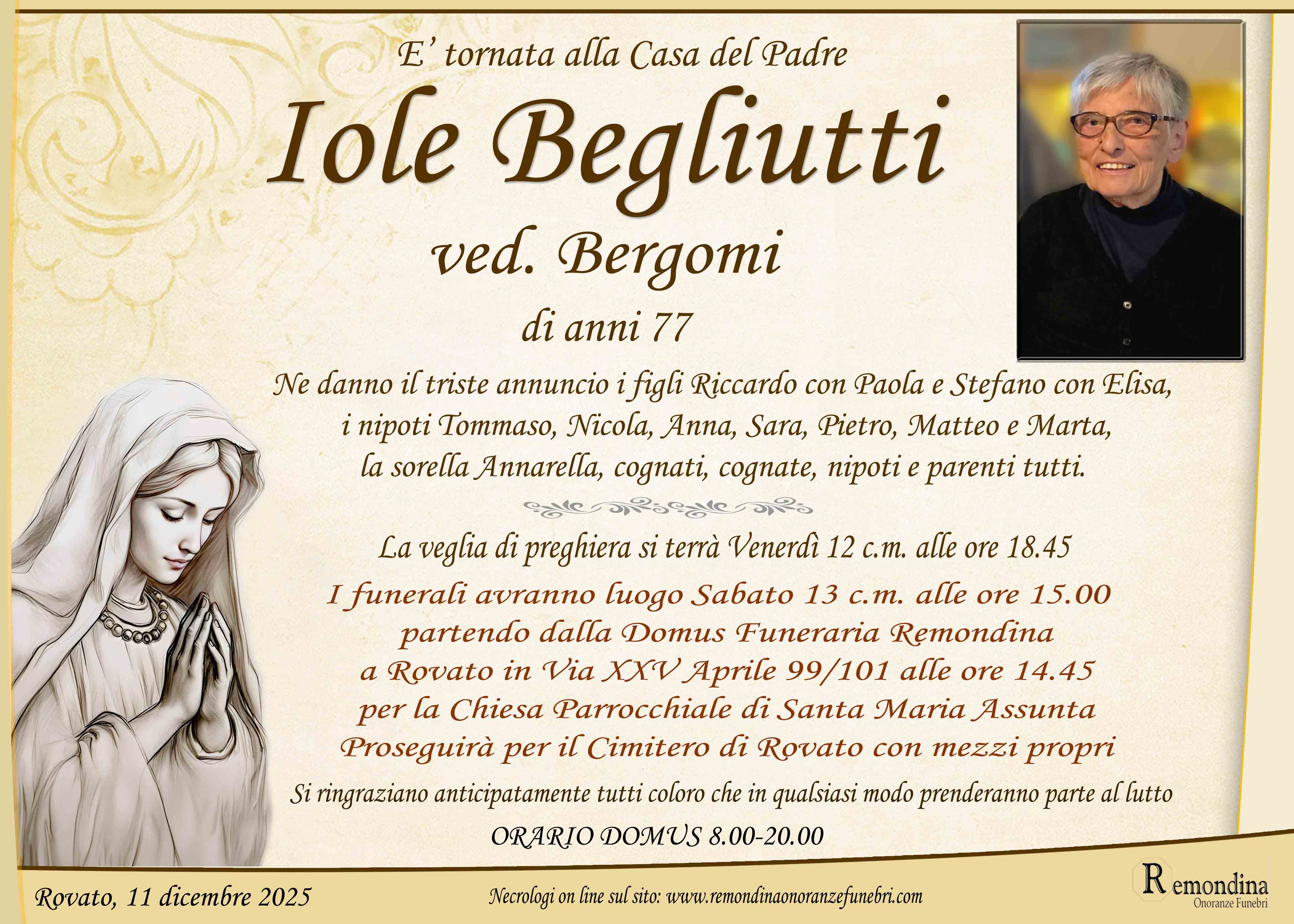 Ciao Iole la mano del tuo Angelo adesso sono sicura di condurrà verso un’alba di luce oltre la quale niente ormai potrà turbarti o farti del male, perché sei già nella pace eterna. Il ricordo della tua vita resterà sempre come esempio nel cuore di chi ti ha amato.
